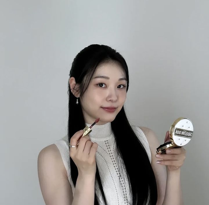 한 명품 브랜드의 파우더와 립스틱을 들고 있는 모습도 공개했다.