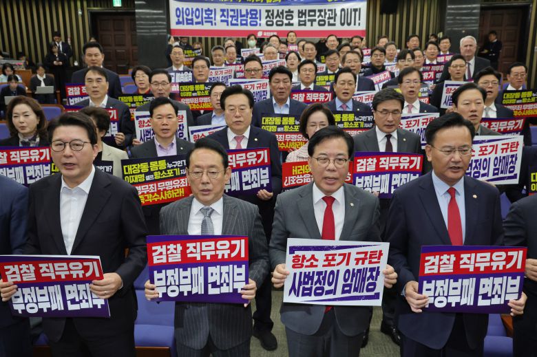 또 송 원내대표는 “정 장관과 노만석 검찰총장 대행은 즉시 책임지고 사퇴하라”며 “국회 차원의 국정조사와 현안 질의를 신속하게 진행할 것을 다시 제안한다”고 했다.