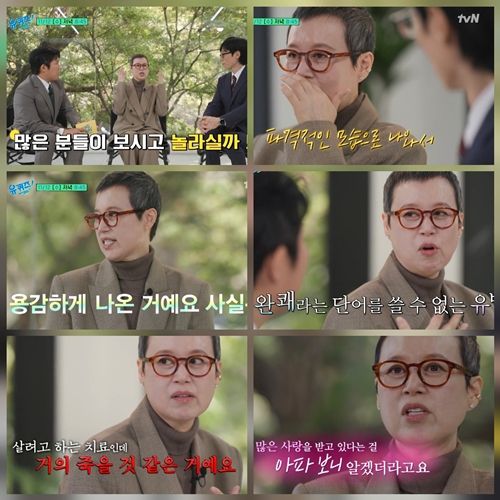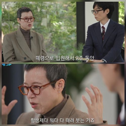 그는 이어 “폐렴으로 입원해서 2주 동안 항생제다 뭐다 때려붓는 거죠. 원인을 모르니까 얼굴은 막 붓고, 살려고 하는 치료인데 거의 죽을 것 같은 거예요”라며 “겨울에 아팠던 것도 감사하고, 이 한여름에 시원한 곳에서 치료받는 것도 감사하고, 마음이 더 단단해졌어요”라고 담담히 말했다.