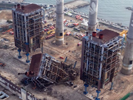 지난 6일 울산 남구 동서발전 울산화력발전소 보일러타워 5호기가 붕괴됐다. 뉴스1