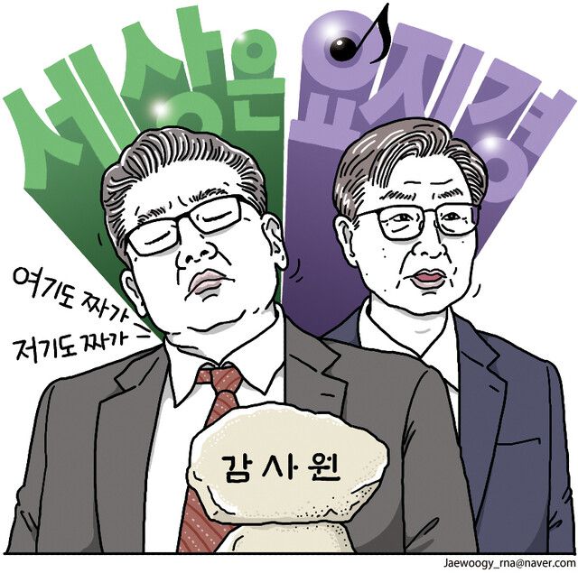 유병호 감사위원은 윤 정부 시절 감사원 사무총장을 지낸 실세로, ‘월성 1호기 조기 폐쇄’ ‘국가통계 조작 의혹 사건’ 등 문재인 정부를 겨냥한 표적 감사를 주도했다. 문재인 대통령 시절인 2021년 11월 임명된 최재해 원장은 윤 정부 때 감사원의 역할이 ‘대통령 국정운영 지원’이라는 취지로 발언해 비판을 샀다. 그랬던 최 원장이 정부가 바뀌자 윤 정부 시절의 감사원을 점검하겠다고 했으니 유 감사위원 눈에는 영혼 없어 보였을 수 있겠다. 하지만 감사원의 독립성·중립성 훼손에 맨 앞에 섰던 인물이 누구인가. 유 감사위원이 최 원장을 떠나보내며 ‘세상은 요지경’을 틀고 소란을 피운 것이야말로 요지경 같고 엽기적이다.