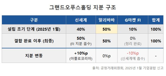 그랜드오푸스홀딩은 신세계와 알리바바가 각각 50%씩 공동 출자한 합작법인으로, 두 그룹이 동등한 지분으로 공동 지배하는 구조다. 신세계그룹 계열사 아폴로코리아와 알리바바그룹은 올해 1월 기업결합 신고를 마쳤으며 결합 완료 이후 JV는 지마켓과 알리익스프레스의 지분을 각각 100% 보유하게 됐다.