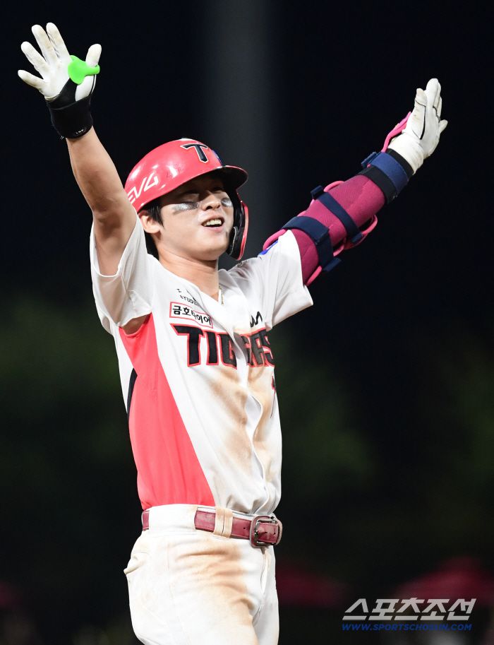 10일 광주 기아챔피언스필드에서 열린 KIA와 삼성의 경기. 8회말 2타점 적시타를 날린 KIA 박찬호. 광주=송정헌 기자songs@sportschosun.com/2025.09.10/ |