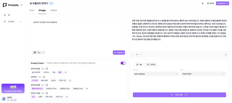 Promptly는 복잡한 프롬프트 문법을 알지 못해도 자연어 한 줄 입력만으로 원하는 AI 결과를 얻을 수 있는 것이 핵심 특징이다. AI가 이해하기 어려운 불완전한 명령어를 자동으로 분석하고 교정해, ChatGPT, Claude, Midjourney를 비롯한 다양한 생성형 AI 모델에 최적화된 형태로 변환해준다. 프롬랩스 측은 이를 “AI가 사람의 언어를 알아듣게 만드는 번역기”라고 설명했다.