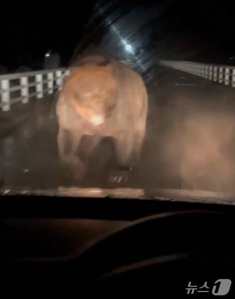 일본 홋카이도에서 주행 중이던 차에 돌진하는 곰(출처=엑스).
