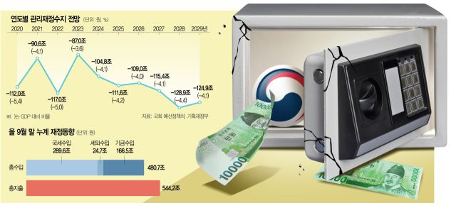 올해 나라 살림 적자 규모가 9개월 만에 100조 원을 넘어섰다. 코로나19 팬데믹으로 대규모 재정이 집행됐던 2020년 이후 두 번째로 큰 규모다. 이재명 정부가 확장재정을 펼치고 있는 가운데 1·2차 추가경정예산이 조기 집행된 여파다. 정부가 내년도 728조 원의 슈퍼 예산을 편성한 데다 국회 심의 과정에서 재정지출을 더 늘리라는 요구가 확대돼 내년 나라 살림 적자 규모는 올해보다 더 커질 수 있다는 분석이 나온다.