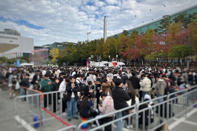 행사장 앞에는 전날 밤부터 사람들이 늘어서기 시작했다. 일교차가 큰 날씨 탓에 대부분 두터운 옷차림이었고, 미리 준비해온 간이의자에 기대 밤을 보낸 이들도 많았다. 늦어도 당일 새벽에는 도착해야 그나마 줄의 앞쪽에 설 수 있었다. 13일 부산 벡스코(BEXCO) 앞은 수많은 게임팬들로 가득했다.