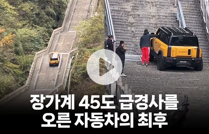 더욱 놀라운 사실은 자동차가 오른 건 평범한 오르막길이 아니라 계단이라는 건데요. 이곳은 장가계에서 가장 인기 있는 관광지인 '999개 돌계단'입니다.
