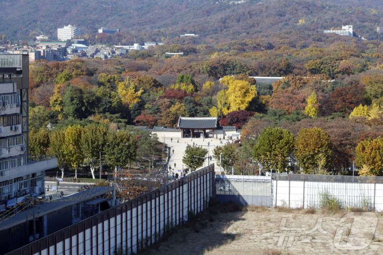 (서울=뉴스1) 박정호 기자 = 국가유산청이 올해 안으로 유네스코 세계유산 종묘 일대를 '세계유산지구'로 지정 고시와 관련 행정 절차를 마치고, 서울시에 세계유산영향평가를 요청할 계획이라고 밝혔다. 다만 서울시는 세운4구역이 종묘로부터 100m 이상 떨어져 있어 영향평가 대상이 될 수 없다는 입장을 고수하며 맞서고 있다. 사진은 이날 오후 서울 종로구 종묘와 세운 4구역 재개발 공사 현장 모습. 2025.11.14/뉴스1