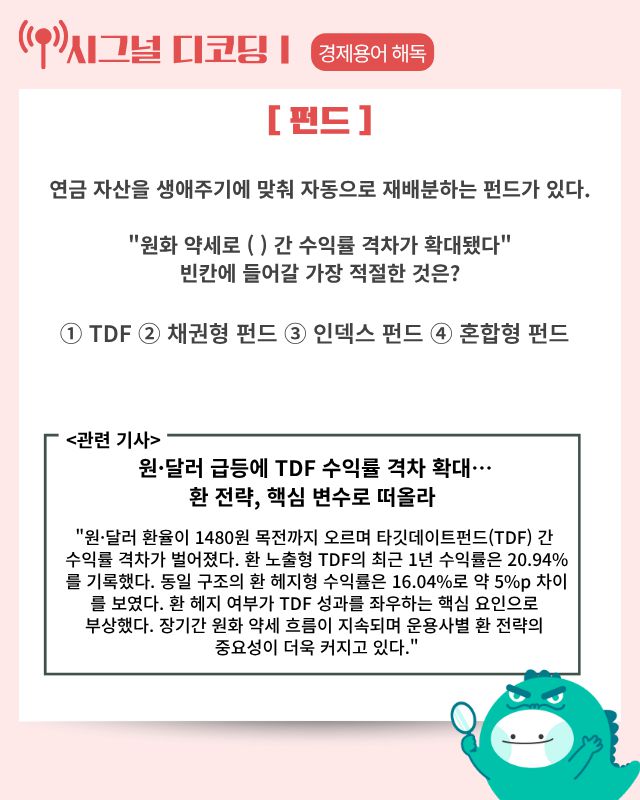 ▶ 기사 바로가기: 원·달러 급등에 TDF 수익률 격차 확대···환 전략, 핵심 변수로 떠올라