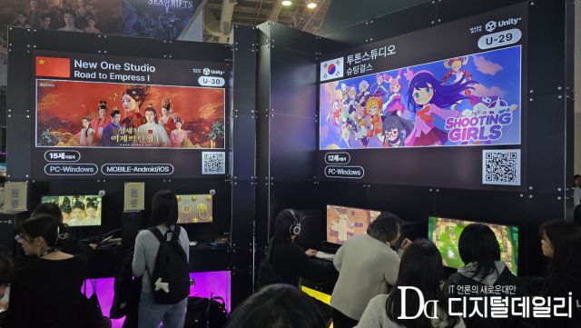 [부산=디지털데일리 이학범기자] 유니티가 '지스타 2025'에서 글로벌 인디게임을 한데 모은 대규모 쇼케이스 존을 마련해 관람객들의 시선을 끌고 있다. 아시아·유럽·미주·오세아니아 등 다양한 지역의 창작물을 선보여 전 세계 인디게임 생태계를 경험할 수 있는 공간을 구현했다.