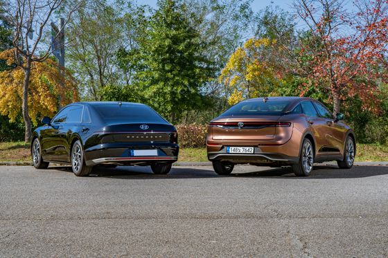 현대 그랜저 하이브리드(왼쪽)와 토요타 크라운 하이브리드. |