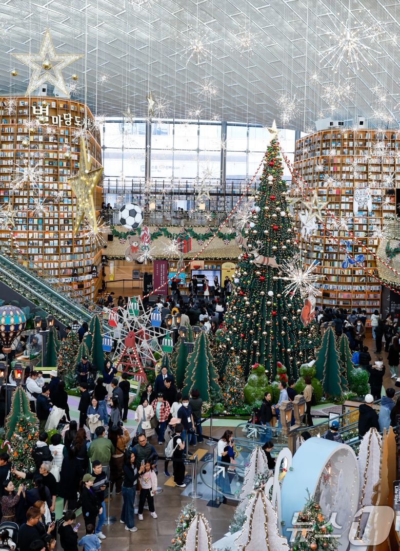 (서울=뉴스1) 안은나 기자 = 뮤지컬 배우 리사(Lisa), 이연경, 이경준, 한일경, 아역배우 윤도영, 최지훈, 우도연, 최예린이 16일 오후 서울 강남구 코엑스 별마당 도서관에서 열린 서울시뮤지컬단 '크리스마스 캐럴' 토크 콘서트에서 주요 넘버를 선보이고 있다. 영국의 대문호 찰스 디킨스가 집필한 구두쇠 '스크루지'의 이야기를 다룬 가족 뮤지컬 '크리스마스 캐럴'은 내달 5일부터 세종문화회관 M씨어터에서 초연한다. 2025.11.16/뉴스1