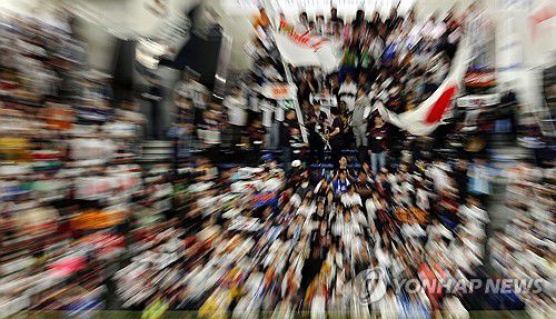 (도쿄=연합뉴스) 이동해 기자 = 16일 일본 도쿄돔에서 열린 2025 K베이스볼 시리즈 대한민국과 일본의 평가전. 일본 야구팬들이 선수들에게 응원을 보내고 있다. 2025.11.16