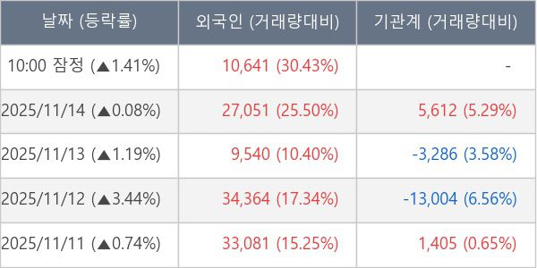 [서울=뉴스핌] 로보뉴스 = 17일 10시 15분 현재 달바글로벌(483650)은 전일 대비 1.41% (현재가 129,700원) 상승했고, 외국인이 최근 7일 연속 순매수(누적 17.16만 주, 잠정) 행진을 하고 있다.