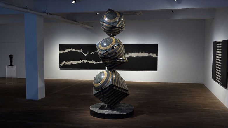 작가는 둥근 구와 정육면체의 조합을 추구합니다.