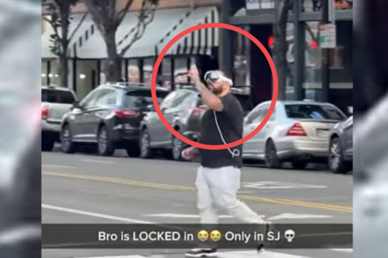 횡단보도를 건너는 애플 비전 프로 사용자. [유튜브 ELGORDOMAMON 캡처]