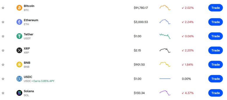 같은 시각 주요 코인도 일제히 하락했다. 이더리움은 3000.53달러(-2.24%), 리플(XRP)은 2.15달러(-2.20%), 바이낸스코인(BNB)은 901.50달러(-1.84%), 솔라나는 130.34달러(-4.37%)를 기록했다.