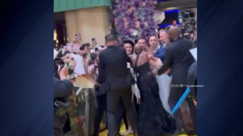 그란데가 놀라면서 휘청거리자 옆에 있던 동료 배우 에리보와 경호원들이 달려와 남성을 붙잡았습니다.