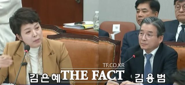 18일 국회 운영위원회 전체회의에서 김은혜 국민의힘 의원과 김용범 대통령실 정책실장이 부동산 정책과 가족 언급을 두고 날선 고성을 주고 받았다. /국회방송 유튜브 캡처 |