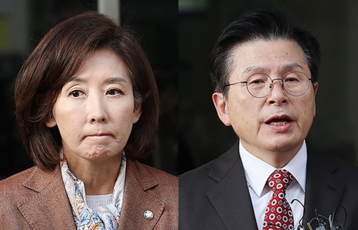 국민의힘 나경원 의원(왼쪽)과 황교안 자유와혁신 대표. 연합뉴스 |