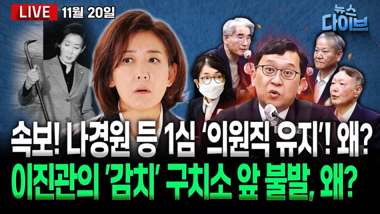 출연: 노영희 변호사, 박진영 정치비평가, 장윤미 변호사, 황준범 한겨레 논설위원, 진행: 고현준. ‘빠루 사건’ 나경원 등 전원 유죄, 의원직 유지형...솜방망이? / “이배용 카드 내가 찢었다”는데... 김건희 오빠 영장 기각 / 김선교 쪽, 양평 공흥지구 관련 회유·증거인멸 시도? / 재판 방해·거짓말·선서 거부... ‘난장판’된 법정 / 이진관 판사 ‘감치’, 구치소 앞서 불발 왜? 오늘 (11월 20일) 뉴스 다이브 많은 시청바랍니다.