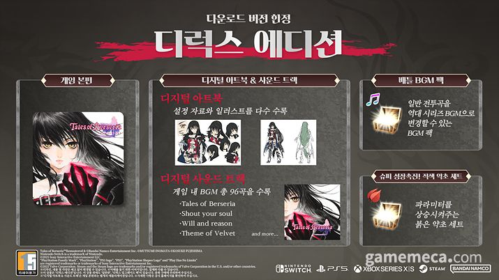 ▲ 테일즈 오브 베르세리아 리마스터 디럭스 에디션 구성품 (자료제공: 반다이남코 엔터테인먼트 코리아) |