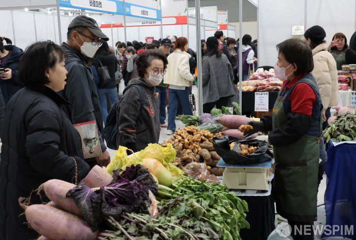 [서울=뉴스핌] 이길동 기자 = 김치의 날인 22일 서울 서초구 양재동 aT센터 열린 2025 대한민국 김장대축제에서 시민들이 김치·김장재료를 살펴보고있다. 2025.11.22 gdlee@newspim.com