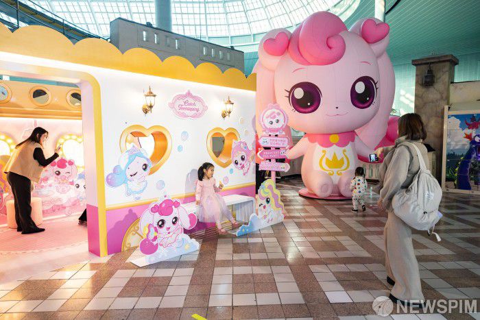 [서울=뉴스핌] = 롯데월드 어드벤처가 지난 22일부터 내년 3월 2일까지 인기 애니메이션 '프린세스 캐치! 티니핑'과 함께하는 겨울 시즌 축제 '트윙클 미라클 윈터'를 진행한다고 24일 밝혔다. 매일 오후 2시와 8시, 어드벤처 1층 퍼레이드 코스에서는 산타와 요정이 사랑을 전하는 '해피 크리스마스 퍼레이드'가 열린다. 사진은 '캐치! 티니핑 마법열차 포토존'에서 기념촬영하는 방문객들 모습. [사진=롯데월드] 2025.11.24 photo@newspim.com