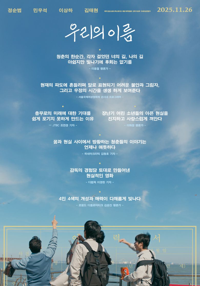 우정과 경쟁 사이에서 흔들리는 청춘들의 솔직한 얼굴을 선명하게 기록한 <우리의 이름>은 바로 오늘 11월 26일 개봉해 전국 극장에서 관객들을 만난다.