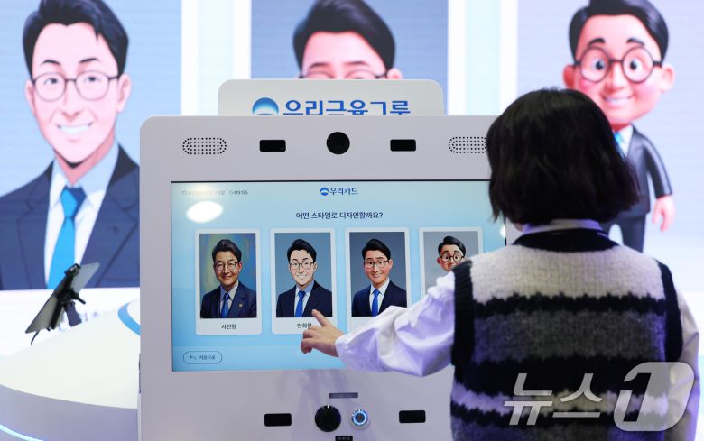 (서울=뉴스1) 오대일 기자 = 26일 서울 서초구 aT센터에서 열린 '코리아 핀테크 위크 2025' 우리금융 부스에서 관계자가 인공지능(AI) 키오스크를 소개하고 있다. '핀테크 X AI, 금융에 취향을 더하다'라는 주제로 열리는 이번 박람회는 오는 28일까지 사흘간 진행된다. 2025.11.26/뉴스1