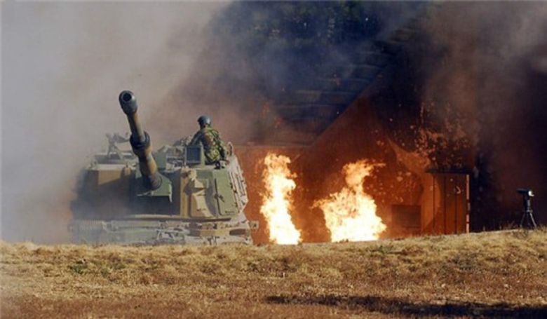 2010년 11월 23일 북한의 포격 도발에 해병대 연평부대가 대응 사격에 나서고 있다. /국방부 제공