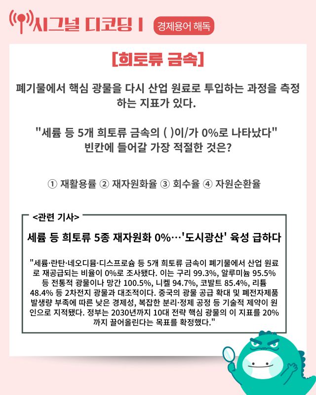▶ 기사 바로가기: “세륨 등 희토류 5종 재자원화 0%···‘도시광산’ 육성 급하다”