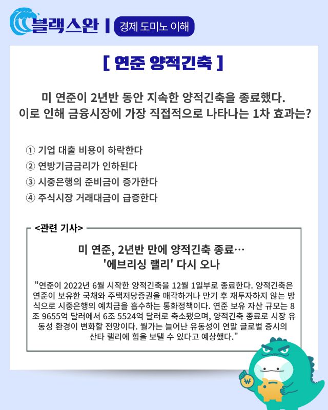 ▶ 기사 바로가기: 美 연준, 2년반 만에 양적긴축 종료···‘에브리싱 랠리’ 다시 오나
