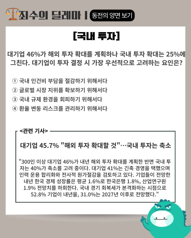 ▶ 기사 바로가기: 대기업 45.7% “해외 투자 확대할 것”···국내 투자는 축소