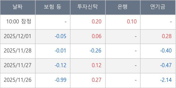 ※ 사모펀드 등 일부 기관의 순매매량은 표시되지 않음