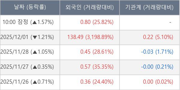 [표] 외국인ㆍ기관 순매매량 (단위 만주)