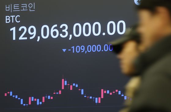 2일 일본 국채 금리 급등(채권값은 하락) 등 영향으로 암호화폐 가격이 큰 폭으로 내렸다. 이날 오후 서울 강남구 업비트 라운지 전광판에 비트코인 가격이 원화로 표시돼 있다. [연합뉴스] |