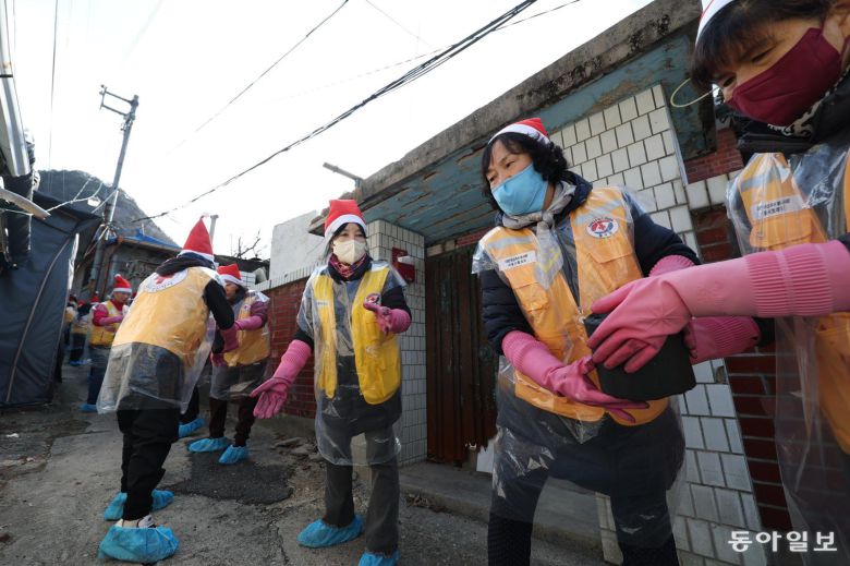 대한적십자사 봉사자들과 고려아연 임직원들이 2일 오후 서울 노원구 덕릉로 일대에서 혹한기 난방 문제로 어려움을 겪는 주거 취약계층에 전달할 연탄을 나르고 있다. 이날 열린 행사에서는 연탄 1만4000장과 백미 700kg이 취약계층 70가구에 전달됐다.