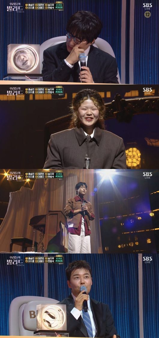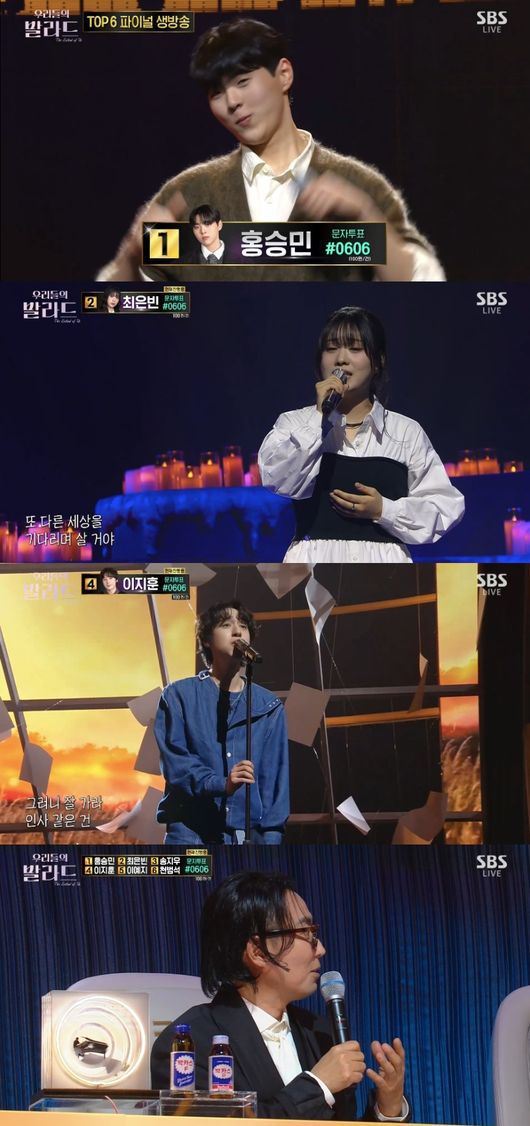 2일 방송된 SBS 예능 ‘우리들의 발라드’에서는 생방송으로 진행된 가운데 파이널 진출자인 TOP6 이지훈, 홍승민, 송지우, 천범석, 이예지, 최은빈이 마지막 무대가 공개됐다.