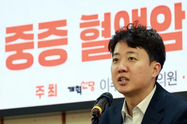 이준석 개혁신당 대표가 지난달 28일 서울 여의도 국회 의원회관에서 열린 '중증 혈액암, 더 나은 내일을 위한 정책 토론회'에 참석해 축사를 하고 있다. 뉴시스 |