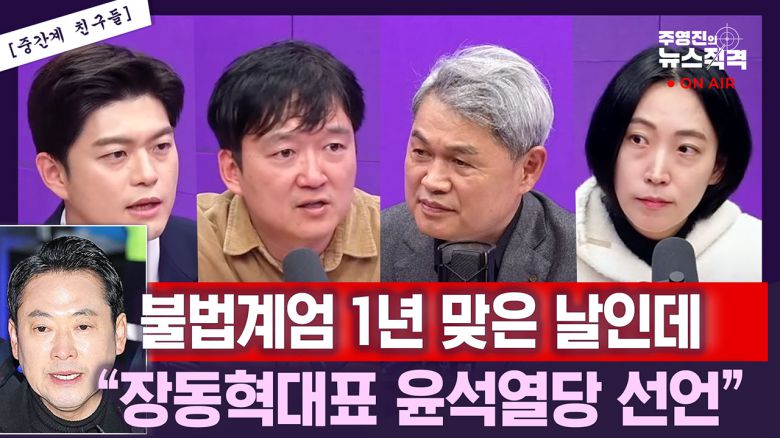 ▷주영진: 국민의힘, 일단 이 질문부터 할게요. 오늘 3선, 초선, 재선 의원들이 모여서 25명이 한 내용 중에 대국민 사과, 그리고 윤석열 대통령과 계엄을 옹호하는 세력과의 절연. 이 메시지가 장동혁 대표, 당을 대표하는 대표로부터 나왔어야 하는 것 아닌가라고 또 많은 분들이 생각하지 않겠습니까?