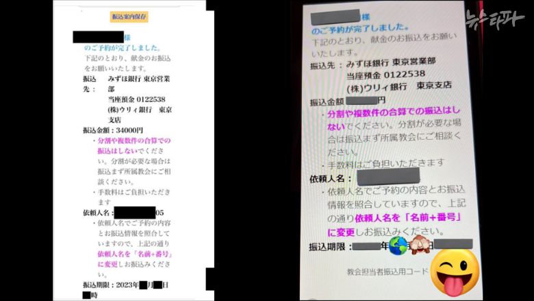 뉴스타파는 일본에서 수십년간 헌금을 걷은 전직 통일교 간부와도 접촉했다. 일본 통일교는 각 지역에 교구와 교회를 두고 헌금 목표액을 할당한다. 통일교는 이를 달성하기 위해 수단과 방법을 가리지 않았다.