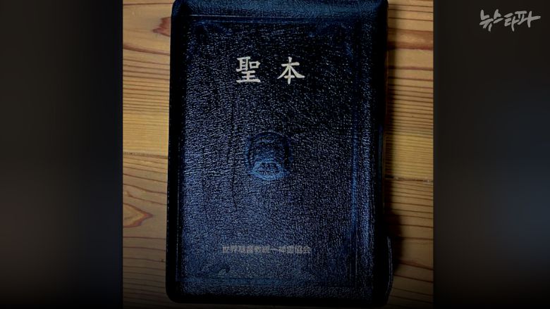 또다른 통일교 헌금 피해자 타무라 이치로(가명) 씨. 타무라 씨의 부모는 통일교가 ‘참부모님 그 자체’라고 주장하며 판매한 한 권짜리 책 ‘성본’을 3억 원에 구매하는 등 통일교에 약 10억 원을 헌금 명목으로 냈다.