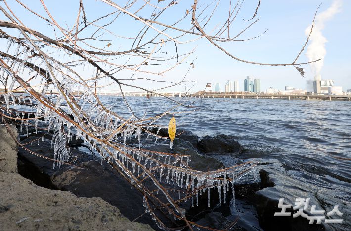 서울 아침 기온이 영하 7도까지 내려가며 강추위가 찾아온 3일 오전 서울 여의도 한강변에 고드름이 얼어 있다. 기상청에 따르면 이날 아침 강원 대관령은 영하 13.2도, 경기 파주는 영하 11.5도, 강원 철원은 영하 11.1도, 서울과 인천은 영하 7.9도를 기록했다. 황진환 기자