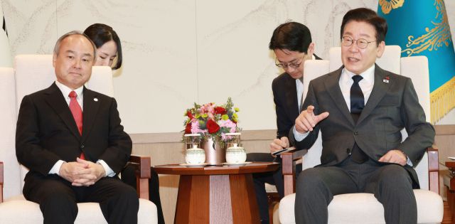 이재명 대통령과 손정의 소프트뱅크그룹 회장 간의 70분 접견에서는 인공지능(AI)의 미래에 대한 담론부터 글로벌 협력 관계까지 폭넓은 논의가 진행됐다. 특히 이 대통령이 모든 국가·국민들의 보편적 접근권을 보장하는 ‘AI 기본사회’ 구상을 제시하자 손 회장은 “AI 발전을 뒷받침할 에너지 구축 계획이 부족하다”는 쓴소리를 냈다. 그러면서도 양측은 한국이 상대적으로 취약한 시스템반도체 역량 강화를 위해 글로벌 반도체 설계 인력을 양성하는 데 합의하는 성과를 얻었다.