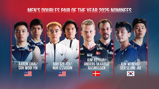 한편 또 다른 한국 배드민턴의 간판인 김원호-서승재 조(세계 1위)도 올해의 남자 복식조 수상 후보에 올랐다. 시즌 10승을 올린 둘은 에런치아-소우이익(말레이시아·세계 2위), 고쓰페이-누르 이즈딘(말레이시아·세계 4위), 김아스트룹-안데르스 스카룹 라스무센(덴마크·세계 6위)과 수상을 놓고 다툰다.