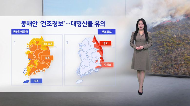 현재 강릉과 고성 등 강원 동해안 6곳 그리고 경북 울진과 포항에는 건조경보가 발령 중이고요.