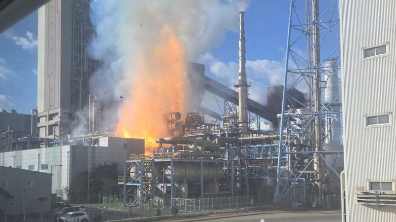 공장 설비 사이로 불길과 함께 연기가 치솟고 있습니다.