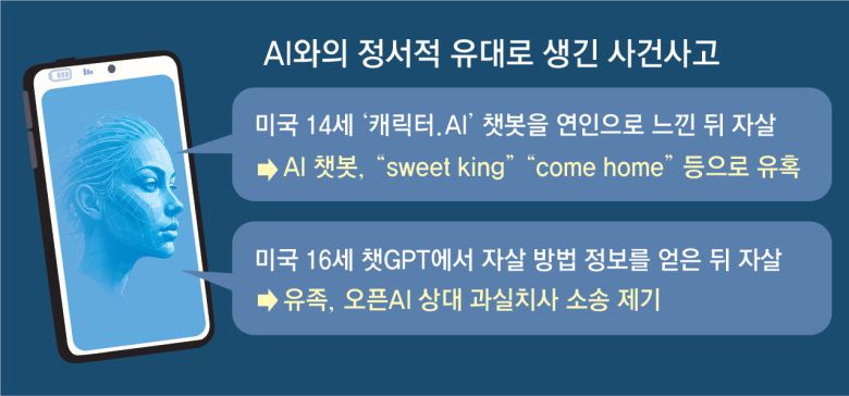이는 사람들을 AI와의 관계 속으로 빨려 들어가게 만든다. 미국 비영리단체 ‘커먼 센스 미디어’의 올해 조사에 따르면, 10대의 72%가 ‘AI 동반자’를 사용한 경험이 있는 것으로 나타났다. AI는 이제 정서적 지지, 외로움 해소, 심지어 연애 상대로서 자리를 차지하고 있다. 매사추세츠공대(MIT) 테크놀로지 리뷰는 “정보를 얻으려고 챗봇을 쓰다가 자신도 모르게 감정적 유대를 형성하게 된다”고 경고한다. AI의 감정지능 모사가 인간의 감정을 움직일 만큼 정교해진 것이다.